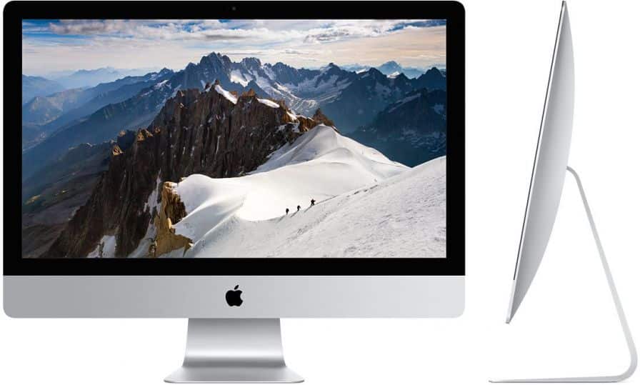 L’iMac 21,5 pouces propose un écran Retina 4K remarquable (4096 x 2880). Les images sont d’une finesse impressionnante, les couleurs franches et contrastées. À l’intérieur, on retrouve un processeur Intel Core i5 quadricœur de septième génération à 3,0 GHz et une carte graphique Radeon Pro 555 ou 560. Pour la connectivité, deux ports Thunderbolt 3 (USB-C) sont de la partie.